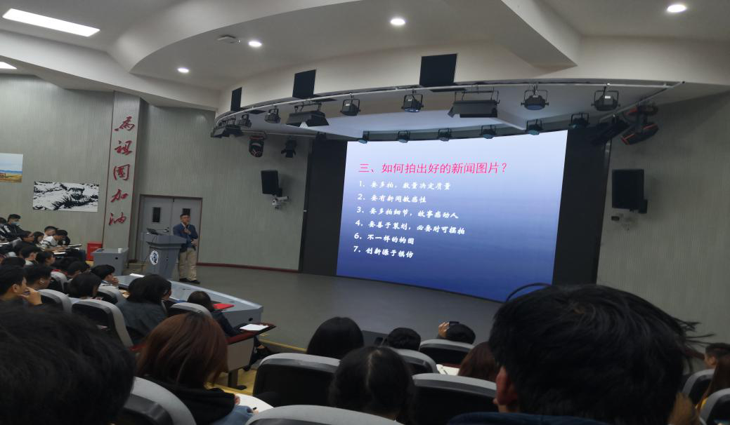为提高校宣传部门与新媒体部门学生工作者对新闻摄影的认识与技术的提升,2020年11月4日19:30在思学楼C110举行了校园新闻摄影培训讲座。本次讲座由我校党委宣传部副部长曹正老师主讲,来自学校各宣传部门与新媒体部门的众多学生参加了此次培训讲座。