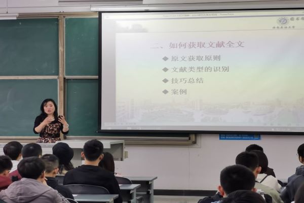 讲座开始,邹老师介绍了学校的图书馆馆藏资源,包括纸质图书和电子资源。截止2016年底,我校馆藏总量包含图书200多万种,期刊2万多种和电子数据库42个,形成了以自然科学和工程技术科学文献为主体,兼有人文社科和管理等多种类型、多种载体的综合性馆藏体系。接着,邹老师讲解了一些关于获取文献全文的方法,包括原文获取的原则、文献类型的识别、获取技巧汇总以及具体实例操作。最后,邹老师针对研究生论文写作的需要,向同学们介绍了查询论文收录和查找投稿期刊的方法,比如常用的SCI、EI和CSCD收录的检索,邹老师强调说“文献检索是一门深奥的学问,关键还在于如何将这些技巧和方法真正运用到研究过程中”。