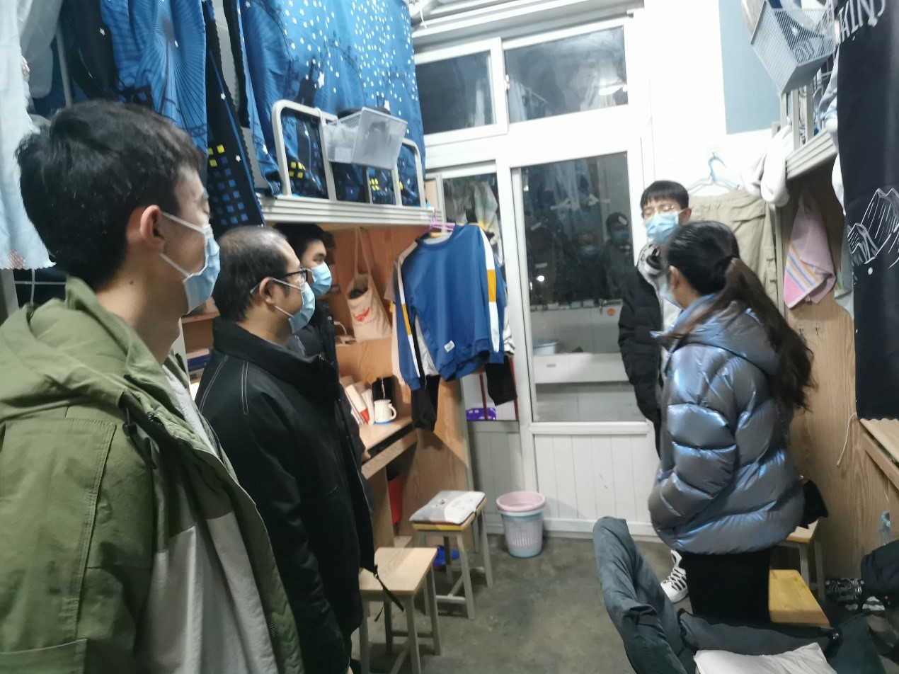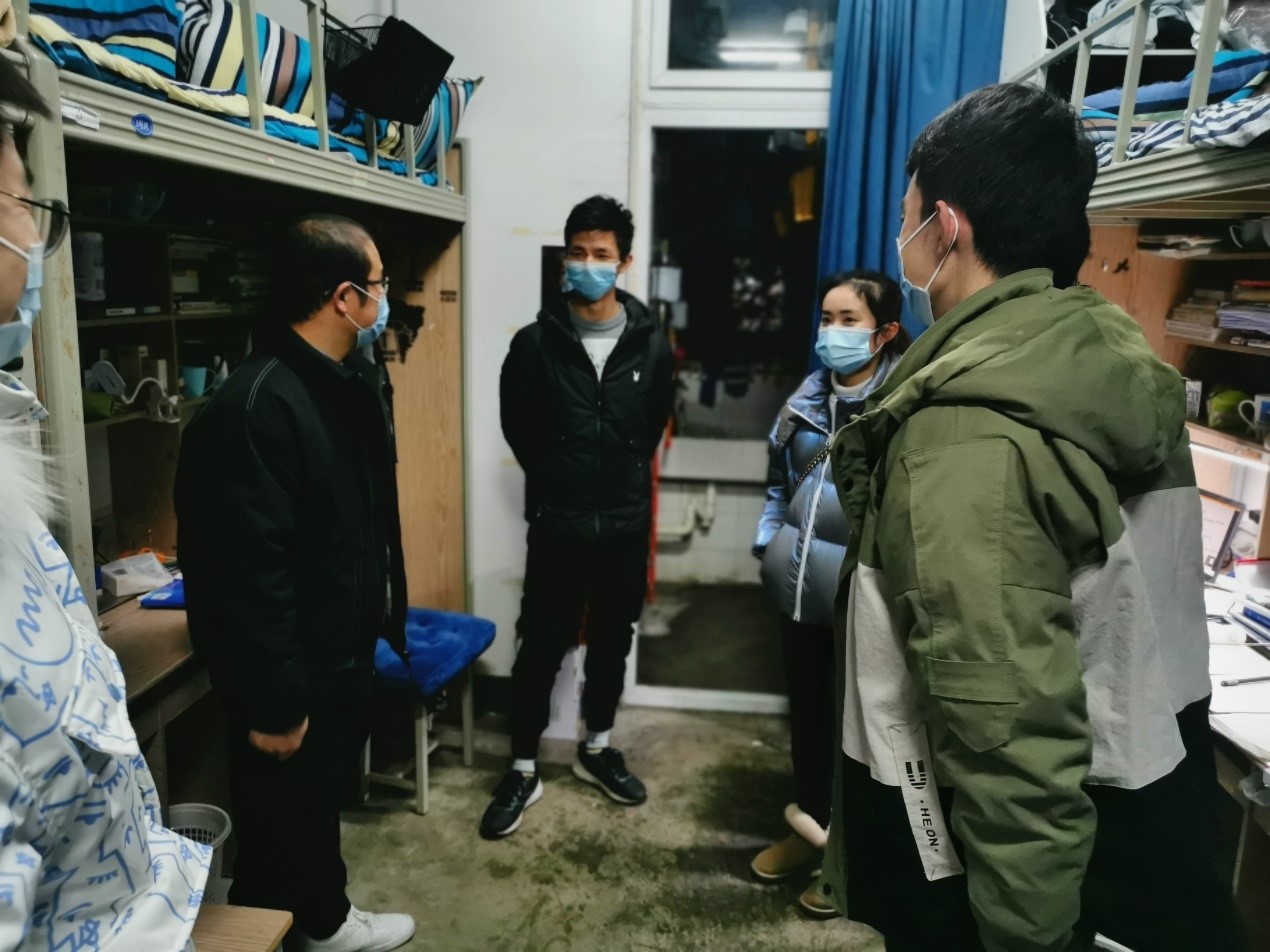 本次走访活动中辅导员袁玥老师和科研班主任胡刚老师对宿舍卫生及电器使用情况等各方面进行了全面的检查,对存在不足的地方提出了改进的建议。完成宿舍安全检查后,两位老师和同学们进行了亲切的交流,询问了同学们最近的学习生活状态,鼓励同学们在课余时间参加一些学科竞赛,丰富自己的大学生活,努力提高自身的综合实力。同时,两位老师还向学生强调:当前处于疫情爆发的特殊时期,大家应尽量减少出行,做好个人防护。