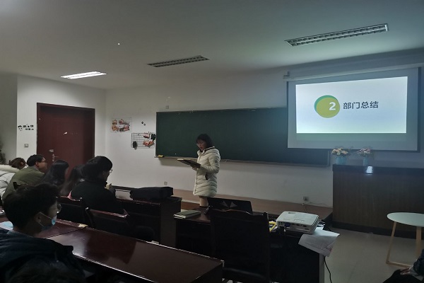会议首先由严雯同学对研会开展的活动进行统计总结,本学期研会总共举办17项活动,其中包含8项讲座;由于疫情原因,本学期活动数量较去年同时期有所减少。随后由各个部门负责人进行部门工作总结,针对各部门的不同情况,对本学期活动计划完成情况、举办活动和工作时存在的问题等进行经验总结,以及对下学期的工作和活动计划进行展望。最后由严雯同学进行整个研会工作总结,提出本学期研会工作中存在的问题以及改进方法,主要针对新闻稿撰写、活动策划以及凭证发放等方面。