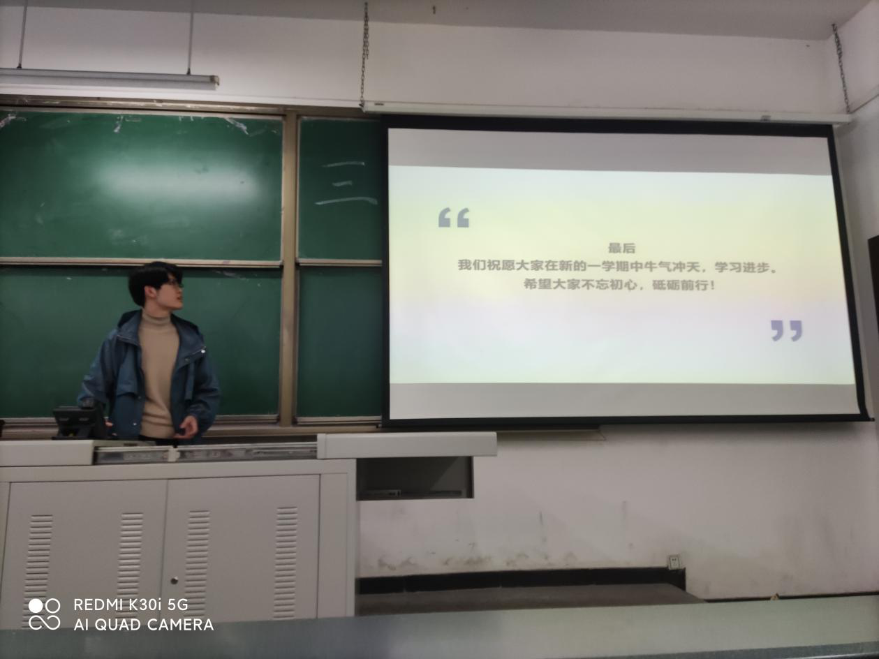 近日,我班在开学首周周五(3月5日)于明志楼A302召开了开学第一会,为了对上一学期的成果进行总结,并对下学期班级提出了一些规划。同时,也让分别了两个月的同学们再次同坐在一个教室举办活动。