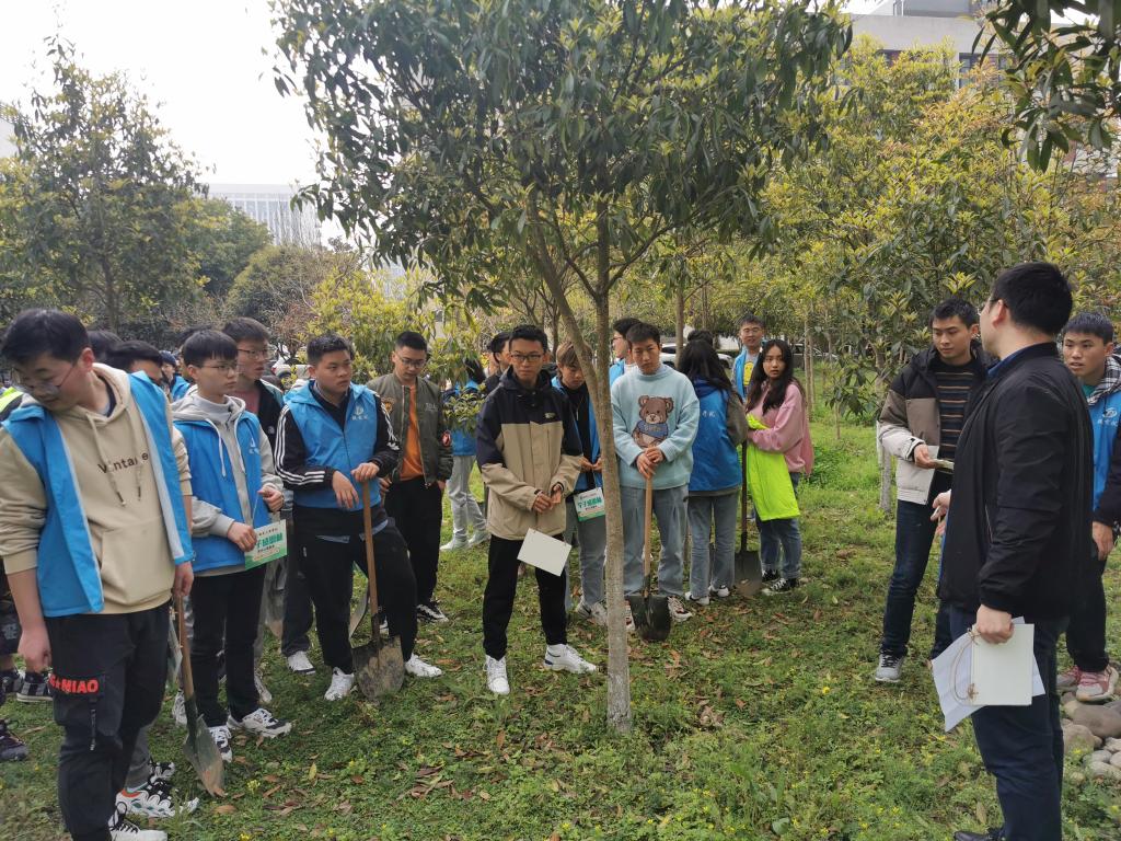 活动现场青春洋溢,志愿者们早早就聚集在感恩林。各专业党支部匹马当先,分别找到了各专业曾经种下的象征感恩的树,曾经的小树苗现在早已枝繁叶茂。当专业的标牌被挂上之时,对先辈们种树的敬意在每个人的心中油然而生。