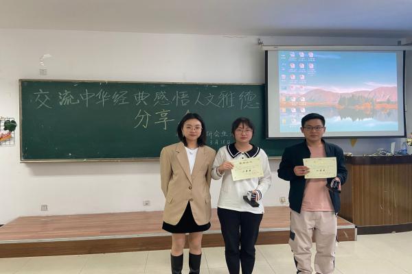 活动开始前,主持人李冬梅介绍了本次活动的理念、评分细则、答辩时间等方面的内容。活动开始,首先是2020级徐超同学给我们分享书目《平凡的世界》。随后,申伟同学为大家分享了《三国演义》,里面各个英雄人物的独特形象给所有评委和观众都留下了深刻的印象,将整个活动的气氛推到了高潮,获得了评委们的肯定与赞扬。而后,各个参赛人员依次上场,分享了自己喜欢的中华经典。最后王国强同学分享了中国西北传统文化之社火,让我们感受到陕北文化独特的魅力,随着最后一位参与者分享完成,整个活动就此结束。