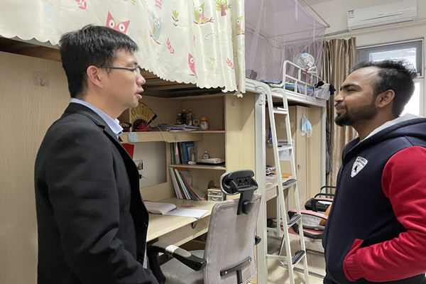 为进一步了解国际留学生孟加拉新年节日准备情况,提高国际留学生的安全意识,4月13日晚,机电工程学院辅导员冯诚沉老师在国际学生助管的陪同下走访了学生公寓24栋国际留学生寝室。