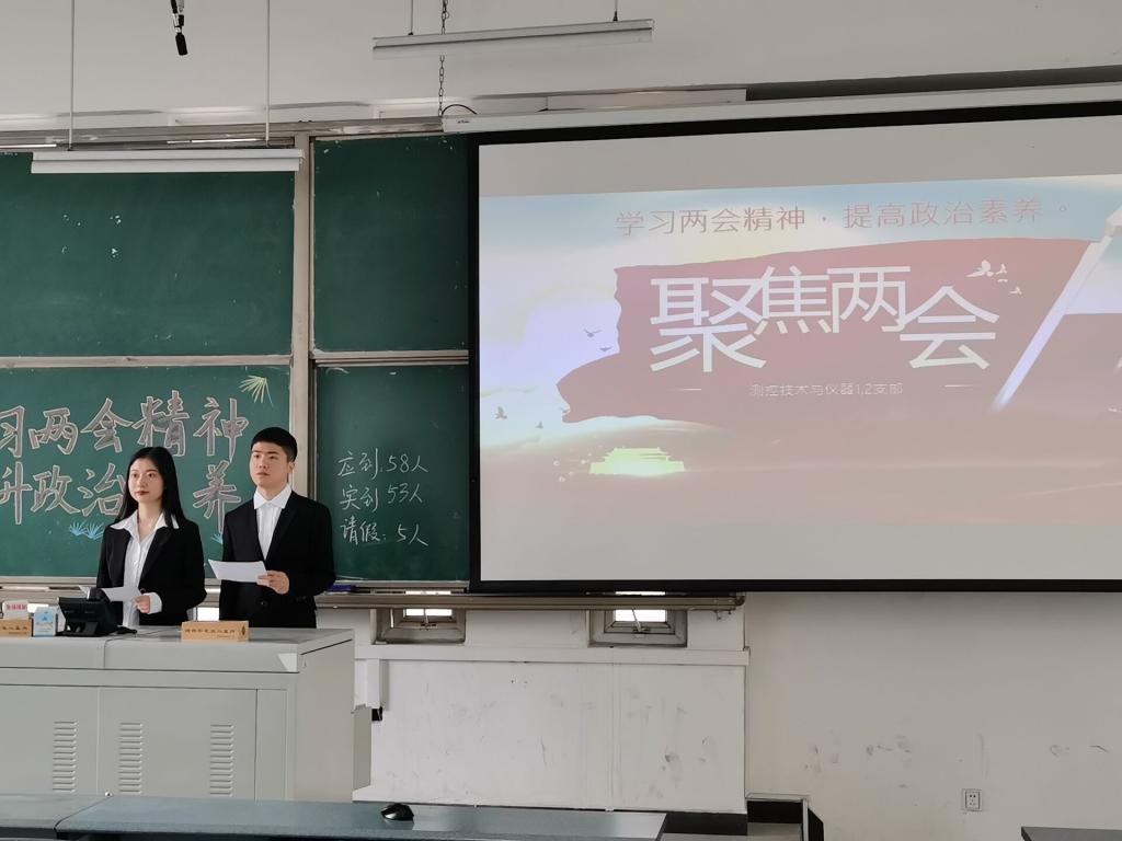 2021年4月15日下午3点整,测控1.2班团支部在明志楼A307开展了2021年春季学期第一次团组织生活,主题为“聚焦两会,规划未来”。