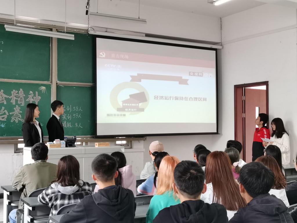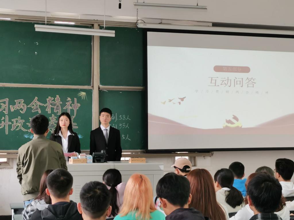 随后,跟随总台记者王冰冰,我们从基层了解到了普罗大众对于两会的看法。十四五以其方便的提议方法,让老百姓们切实感受到了国家对我们的聆听与关怀。同学们对本次两会进行了总结和评价,写下两会感悟并进行分享。最后主持人概括了两会精神。