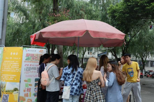 由义旅阳光协会和学子爱心超市共同举办的“橘予甜蜜”爱心助农活动于2021年5月20日在学校一食堂门外拉开帷幕,该活动深受老师和同学们的喜爱。