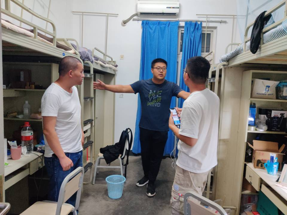 为了更好的了解暑期留校学生的学习和生活情况,加强学生安全意识教育,2021年7月6日,机电工程学院辅导员龚清能老师前往各寝室,关心暑期留校学生生活情况,检查寝室卫生。