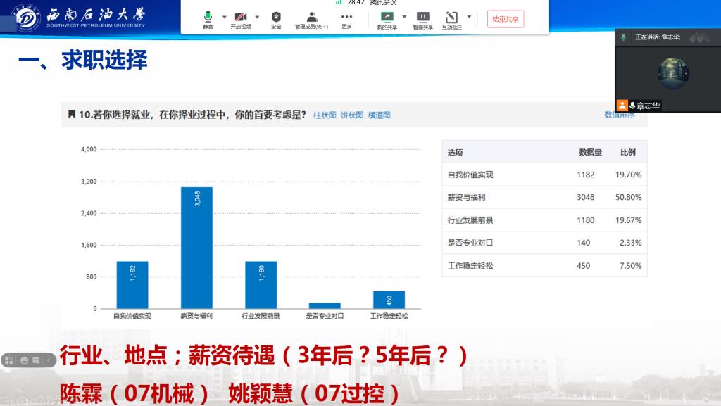 为了让2022届毕业生消除就业中的困惑,进一步帮助同学们树立正确的就业观和择业观,使广大学生了解就业形势,转变就业观念,提高就业技能,2021年9月5日线上举办了机电院2022届毕业生就业形势分析报告会。毕业班辅导员徐敏航、庞国英以及2022届本科毕业生出席本次报告会,团委书记、毕业班辅导员章志华主讲本场报告。