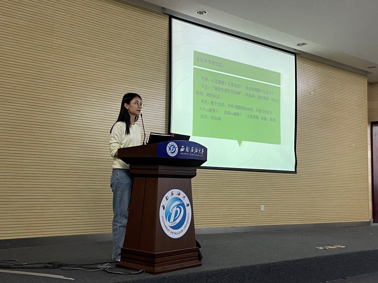 首先,徐敏航老师为同学们解答了求职就业中同学们经常遇到的问题,如考研深造的同学是否需要找工作、现在投递简历的时间是否还合适、简历的制作应当注意哪些问题等等。徐老师的及时讲解,给近期有意寻找工作的同学提供了帮助。对于准备继续进行深造考研的同学,徐老师指出同学们现阶段一定要保持一个良好的心态并且时刻关注研究生招生信息网上发布的有关信息。而对于保研的同学来说,一定要勇于尝试。同时,她也提到了研究生阶段课题组选择的问题。在会议的最后讲了关于中秋国庆的假期与调休问题,由于现阶段疫情形势严峻,所以鼓励同学们非必要情况不得出川,并着重强调了请假与报备的区别等重要问题。
