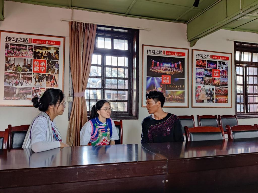 在走访村庄过程中,有一位70多岁的绣娘引起了我们的兴趣。 “我从10多岁就开始学习刺绣,我们彝族刺绣很漂亮,不能忘了这种传统文化,要把它传承下去。我现在会在村里教别人刺绣,很高兴有许多小孩子对彝绣感兴趣,只要有人肯学,我都很乐意去教他们。”面对我们的到来,她热情的向我们展示了刺绣艺术的博大精深。她把家里的刺绣服装全拿出来,并向志愿者们仔细的介绍每一样作品:“这些作品都是我们纯手工、一针一线的做出来的,也有着许多的象征意义”。