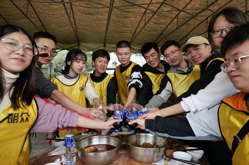 十月二十三日上午八点十分,活动正式拉开序幕。活动刚开始,学院便组织同学们进行分队并各自画了队旗。短暂的游戏环节后到了午餐时间,在同学们热火朝天的准备过后,每一个同学都吃到了由自己与伙伴们共同完成的午餐。下午时分,高空项目更是让同学们心跳飙升,活动场面既激情如火又温馨和谐,活动中同学们默契配合,相互帮助、鼓励,既发扬了无私奉献、团结协作的精神,又尽情挥洒着青春的激情。活动提高了团队凝聚力,也让到场的每位同学都相信部门在大家的努力下会越办越好!