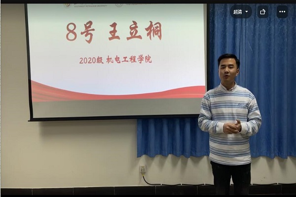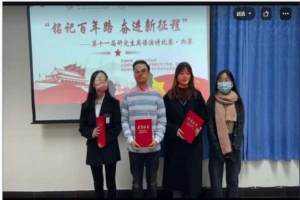 首先,决赛开始由主持人介绍了决赛的主题:“铭记百年路,奋进新征程”。在比赛的演讲环节,每位选手依次上台演讲自己精心准备的内容。参赛选手们的演讲内容各不相同,但一字一句中都体现出本次比赛的主题。有的同学结合了在共产党成立一百年间发生重大事件,还有的结合了自己的亲身经历,每一位同学的演讲都十分生动形象,让人感触颇深。我院王立桐同学在本次比赛中表现优异,他的演讲时而慷慨激昂,时而深情低沉,充分体现出良好的逻辑思维能力、临场应变能力和优秀的英语水平,并最终获得决赛三等奖。比赛最后由评委为选手颁奖,并鼓励同学们在今后的学习生涯中不断努力学习,提升自我,超越自我。