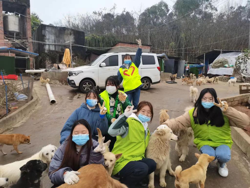 历时半个月的准备,2022的1月,义旅阳光协会成功举办了“爱之家,公益行”动物保护活动。活动在前期准备工作中,协会在校内组织了“爱之家暖冬捐赠计划”活动,向全校同学募集废旧衣物、棉被等保暖物品助力成都爱之家动物保护中心的动物度过寒冬。协会在校内招募参加公益活动的志愿者经过两个半小时的车程抵达成都爱之家动物保护中心。志愿者们协助当地的工作人员搬运以及拆分动物饲料,利用清洁工具清扫动物粪便、清洗衣物等,工作虽然辛苦,但是协会志愿者们互相协作,密切配合,下午完成工作后,志愿者们有序的在基地进行参观,和动物们开心的玩耍,期间采访了基地的工作人员,询问了动物保护中心遇到的困难以及如何合理的养宠物等问题。