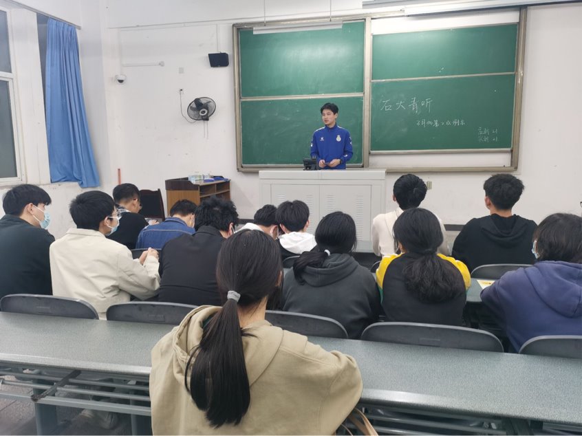2022年3 月28日晚九点四十五分,我院石大青听部门成员在明志楼A301召开全体会议。会议初始,部长张同学对部门本月各项工作进行总结,并表达了对视觉部、运营部同学们工作的肯定,以及对委员们的希冀与鼓励。