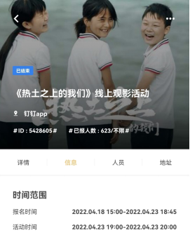 2022年4月24日,由义旅阳光协会主办的“《热土之上的我们》线上观影活动”历时一个半小时,圆满结束。本次活动参与人数达到623人,活动反响良好。