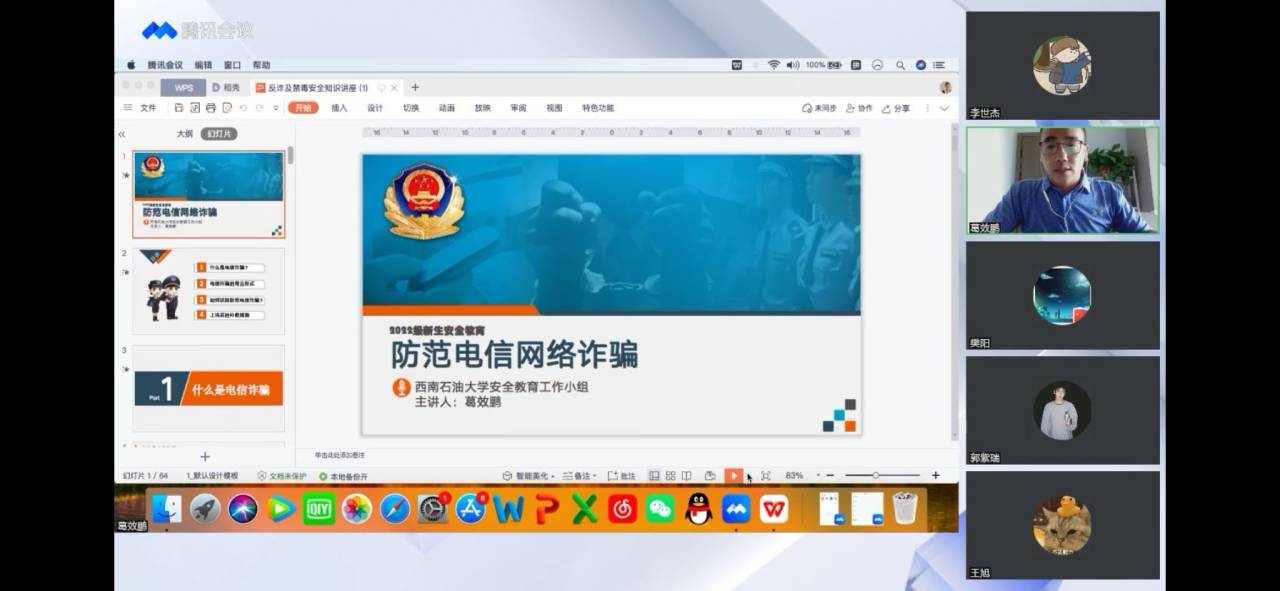 葛老师向同学们介绍了电信诈骗的典型案例,普及电信诈骗知识和网络安全知识,防范网络诈骗的基本知识,增强学生自我辨识能力和风险防范意识。葛老师又向新生介绍了其他安全方面的知识。