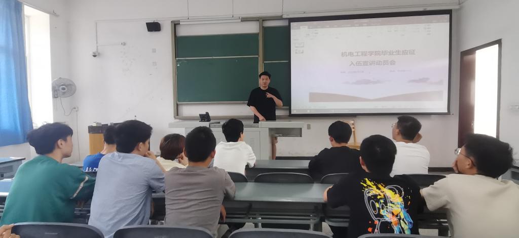 为进一步贯彻大学生征兵入伍的相关政策,鼓励学生积极应征入伍,助力提升国家兵源质量,不断推进国防和军队现代化建设,机电工程学院于5月9日上午在明志楼A302举办2023年毕业生应征入伍动员会,会议由毕业班辅导员袁玥主持。