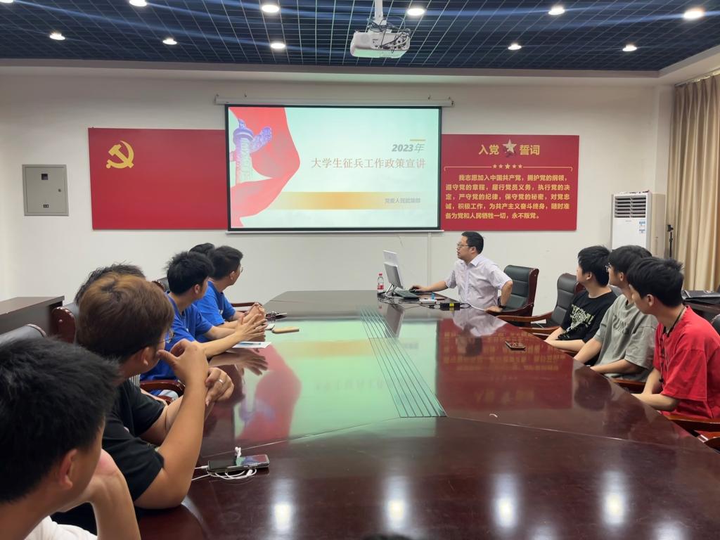 为了响应国家号召,鼓励大学生应征入伍,机电院于5月18日上午在明志楼B504召开征兵宣讲会,会议由机电院毕业班辅导员谭翔主持,学院邀请校党委人民武装部王建林老师出席。