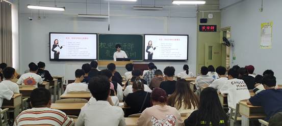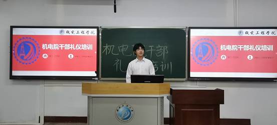 为加强学生干部队伍建设,能够更好地服务师生、树立全体学生干部自尊、自强、自信、自立的精神风貌。5月13日,机电工程学院团学中心文艺部在第四教学楼4402教室开展了“学生干部礼仪培训会”,机电工程学院全体团、学干部出席参加。文艺部刘熙晨、曹瀚予主持此次培训活动。