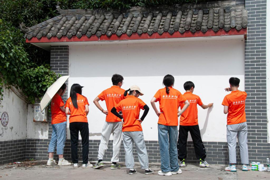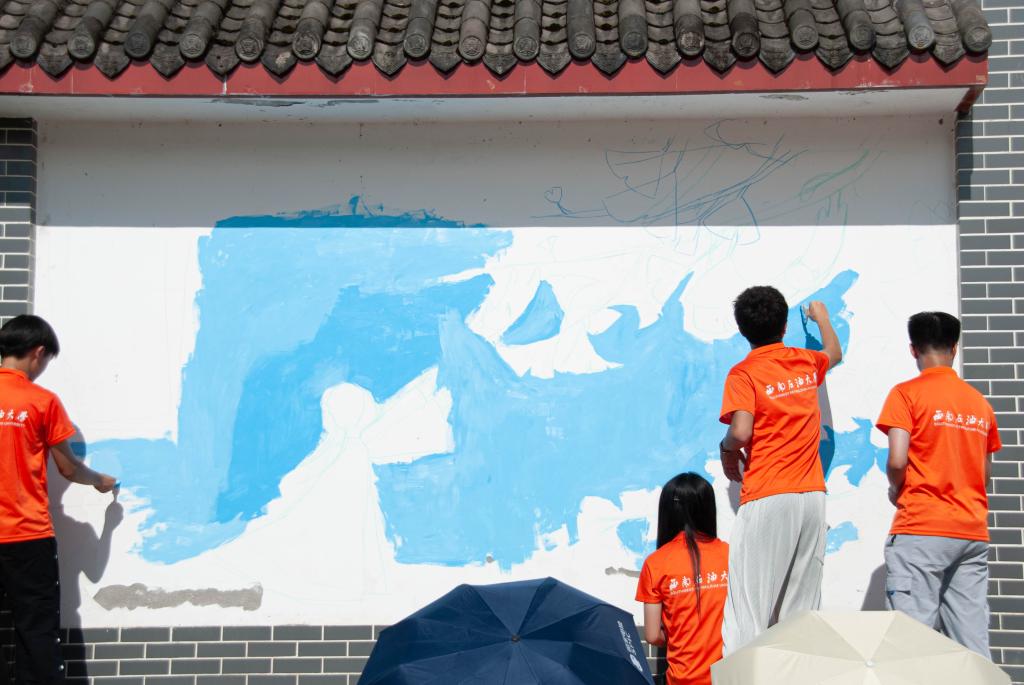 随着城市化进程的日益加快,乡村空心化日益严重,留守儿童和空巢老人缺乏关心与陪伴。为缓解乡村空心化的现象和关爱乡村弱势群体,助力乡村振兴,2023年7月2日机电工程学院“义旅阳光”暑期三下乡实践队于沙湾区万坪村开展了墙绘活动和授课活动。以乡村特有的“赶集文化”为主题,实践队设计了“猪儿交易市场”等绘图,并在墙面上进行了初步绘制,以此来唤醒乡村人民心中的“赶集”记忆。实践队还为乡村留守儿童开展了“色彩理论”的授课,带他们欣赏世界名画,并利用自己所学的色彩理论知识画一幅属于自己的变色龙。