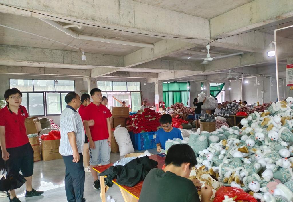 在布娃娃厂,这里的工人全是石堤镇的村民。工厂的老板介绍了一个布娃娃的加工工序和加工时间。多则十几道工序,少则七八道工序,在工人如蝴蝶般蹁跹纷飞的手指中,两三天布娃娃逐渐成形。随后,实践队来到了玖和伞业制伞厂,工厂负责人向队员们现场演示了伞架制作的四步,过程生动易懂。厂中工人家庭多属于家有小孩老人不方便外出打工的情况,而伞厂离家近正好解决了这个问题,在伞厂工作既能照顾家中老小又可补贴家用,并且有的工序可以直接在家中完成,十分方便。在这里,队员们更近一步地体会到了在家门前就业的优势。