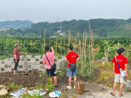 实践队在高桥村与村民交流柑橘林的情况