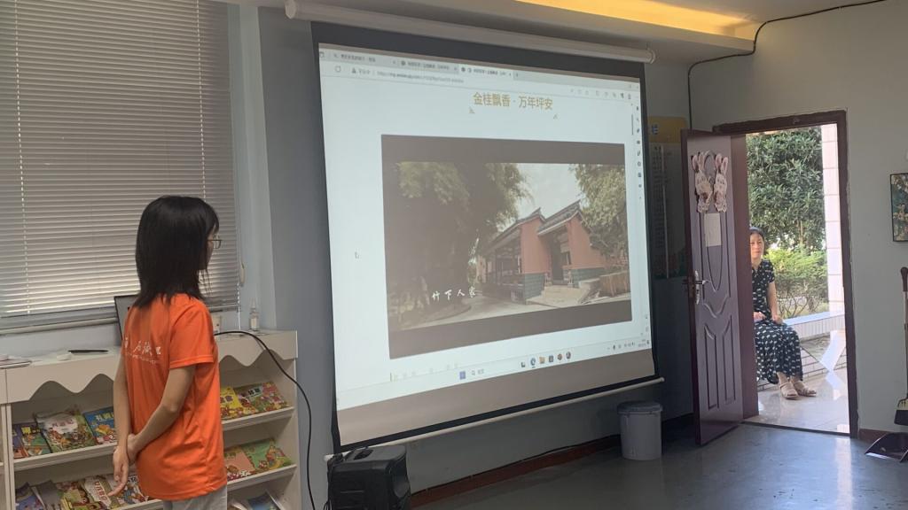 巍巍高山,涛涛绿水,蜀地风光独领风骚;雍容睡佛,馥郁桂香,小镇轸溪风景独好。为开拓留守儿童视野,引导其了解蜀地文化、走出大山,帮助留守儿童树立认识家乡、建设家乡的意识,2023年7月5日,西南石油大学义旅阳光实践队在乐山市沙湾区轸溪镇的“悦读书屋”中,为乡村留守儿童上了一堂以“览蜀地风光,护绿美轸溪”为主题的文化教育公益课。