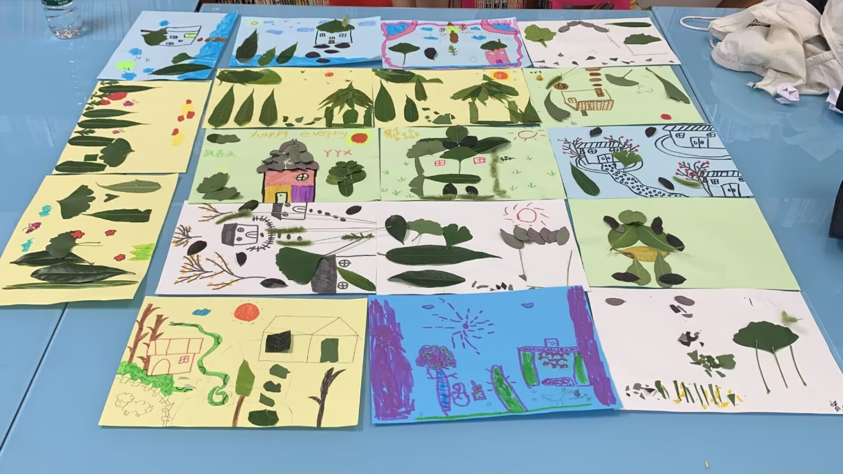 小朋友们的树叶贴画合影