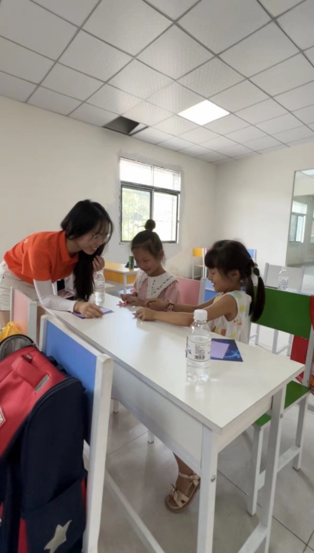 在手工课上,当实践队队员亲手将一张寻常的纸张变幻出绚丽多彩的造型时,孩子们的眼中仿佛充满了无限的憧憬。在实践队队员的教导下,他们用纸张诞生出一只飞翔的鹤、一只调皮的青蛙,或是一朵盛开的莲花,他们不仅仅是在学习,更是在创造。