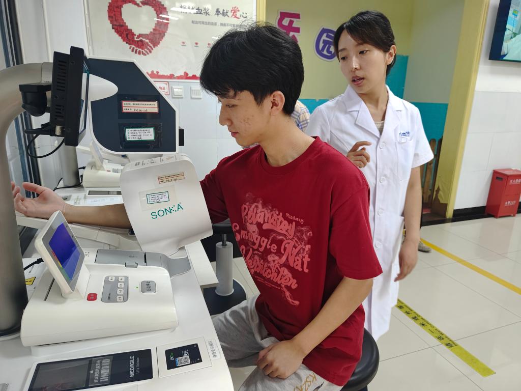 经了解当地的服务站交通及安全情况,实践队成员有序的引导献血志愿者到指定位置进行献血活动。“三下乡”志愿者们通过学习相关安全卫生知识和一些医疗设备的基础用法、注意事项,协助医护人员进行了采血浆任务,并向献血志愿者普及了相关献血知识和献血带来的益处。