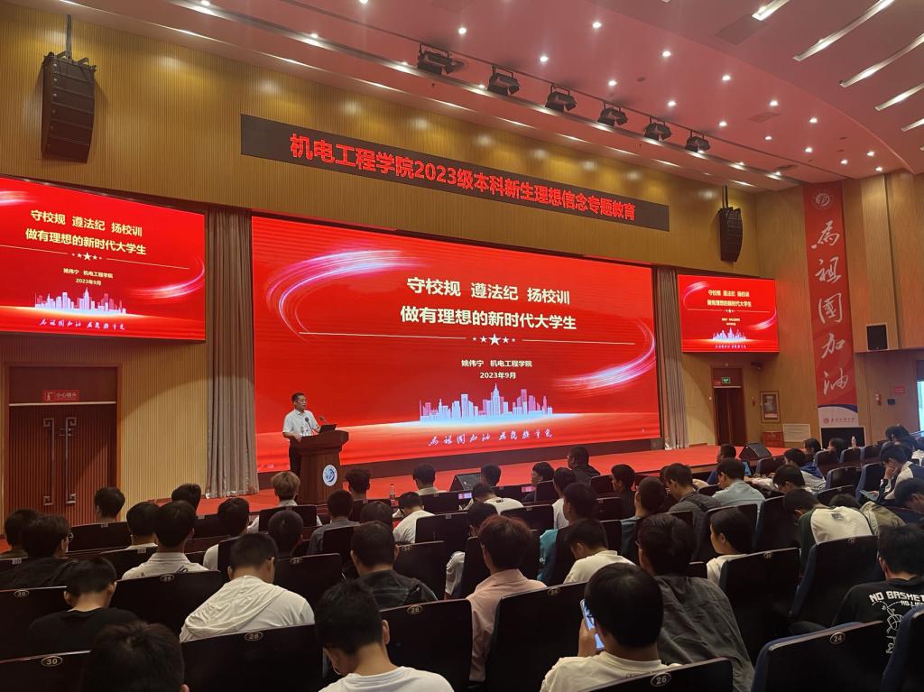 理想指引人生航向,信念承载青春梦想,新时代青年生逢其时,大有可为。为引导新生坚定理想信念,把牢青春航向,9月27日,机电工程学院2023级本科新生理想信念专题教育在图书馆报告厅举行,机电工程学院2023级全体本科新生参加了专题教育,该专题由机电工程学院党委副书记、纪委书记姚伟宁老师主讲。