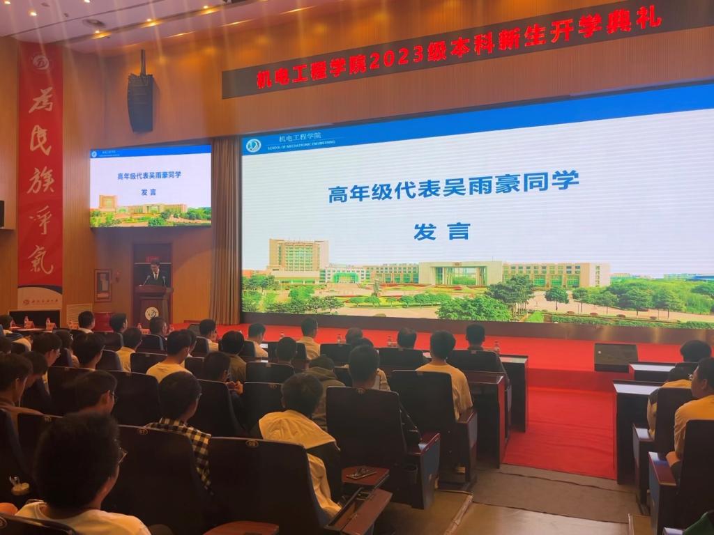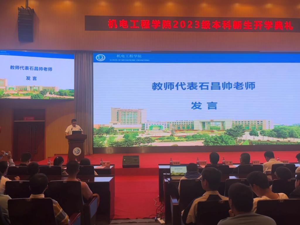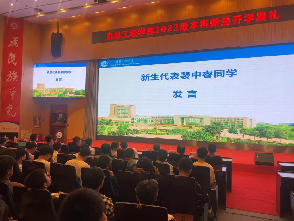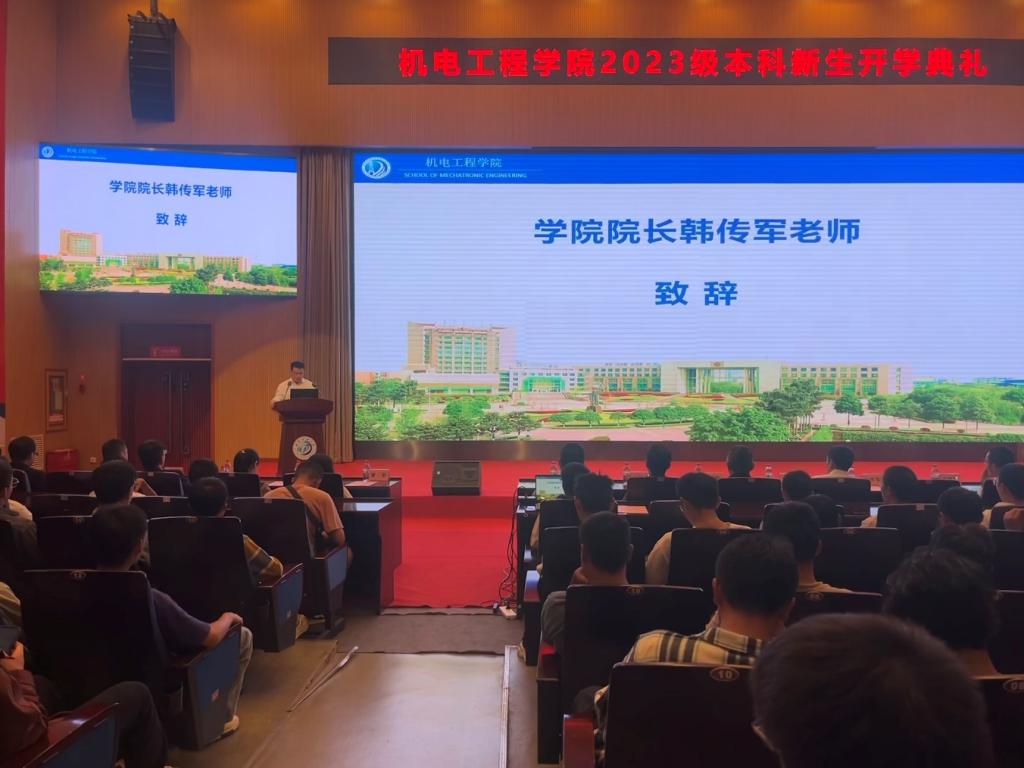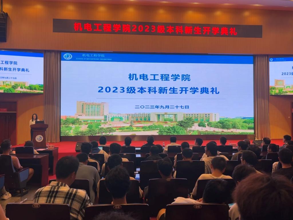 2023年9月27日上午九点,机电工程学院2023级本科生开学典礼在图书馆报告厅隆重举行,来自全国各地的五百多名新生齐聚于此,共同开启人生的新篇章。机电工程学院院长韩传军老师,学院党委副书记、纪委书记姚伟宁老师,学院副院长王国荣老师,各学科教研室主任、教师代表、新生辅导员以及全体2023级本科生参加本次典礼,会议由新生辅导员袁玥主持。