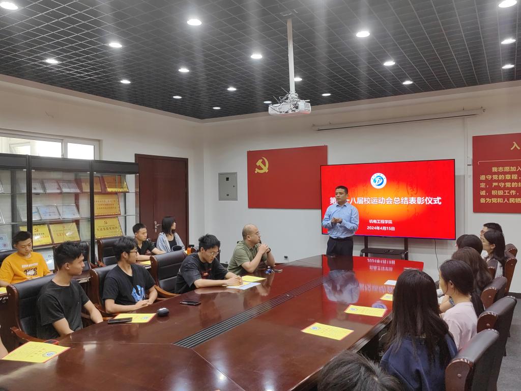 4月15日下午,机电工程学院召开了本次校运会总结表彰大会,对参加本届运动会的运动员以及教练进行表彰和鼓励。