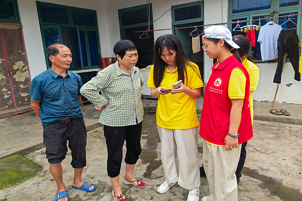 走访宣讲活动由团队志愿者深入乡村家庭,围绕村民生活中的“川善治”小程序和志愿活动进行宣讲。活动期间,团队志愿者耐心帮助永丰村村民一步步完成“川善治”小程序注册,实时解决村民遇到的使用问题。在帮助村民完成小程序注册的过程中,志愿者向村民宣讲永丰村志愿活动积分规则和礼品兑换等,鼓励村民积极参与到永丰村的建设中。