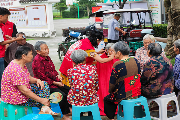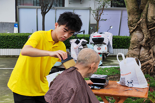 在炎热的夏季,一群充满活力的大学生志愿者走进了四川省眉山市东坡区太和镇永丰村,开展了一场特别的“三下乡”活动。他们与永丰村志愿者一起深入乡村,为当地的老人们提供了免费理发服务,解决了老人们因交通不便、身体原因而难以打理头发的困扰。