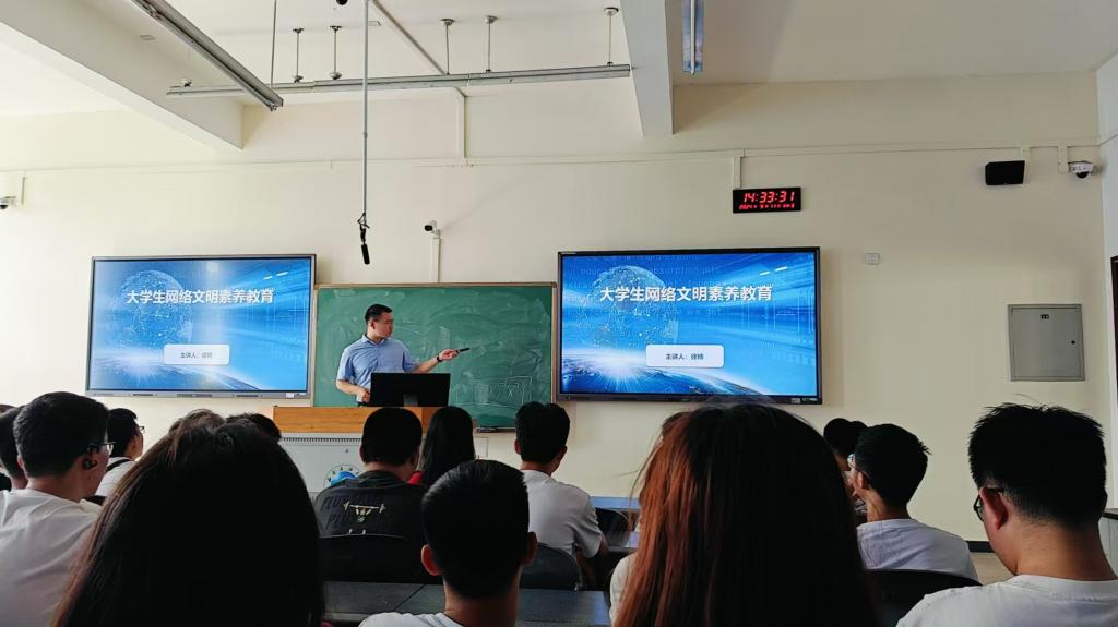 图1 辅导员老师面向学生开展网络文明主题教育班会