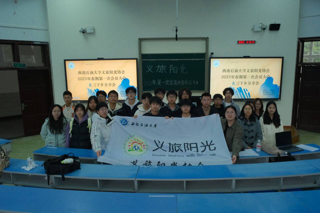 近期,西南石油大学义旅阳光协会成功举办了2025年春期第一次会员大会暨三下乡分享会。大会由张楚浩主持,指导教师袁玥出席活动,旨在加强会员对协会的了解,分享三下乡经验,并为2025年暑期实践队招新做准备。