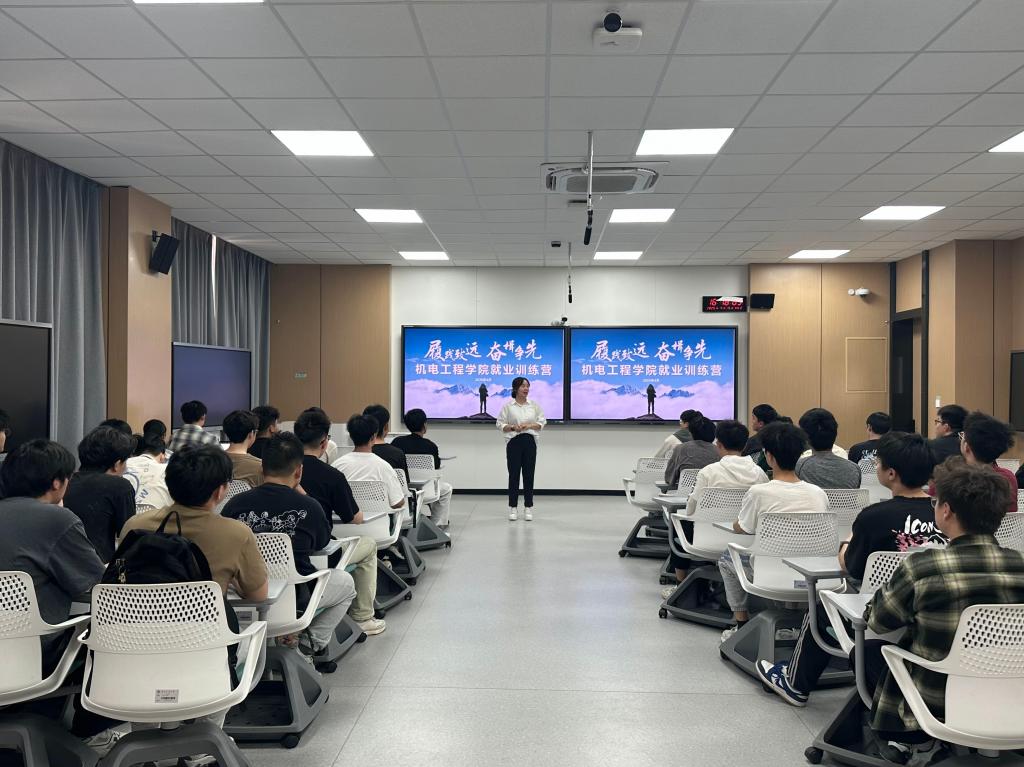 为加强2026届学生对就业形势的了解,提升学生就业竞争力,助力大学生高质量充分就业,机电院特打造就业训练营系列活动。2025年4月15日下午,机电院邀请海尔智家西南区域招聘负责人周徐作为主讲嘉宾,以“就业那些事儿”为主题,从企业的视角对就业形势和求职准备等进行了讲解与指导。