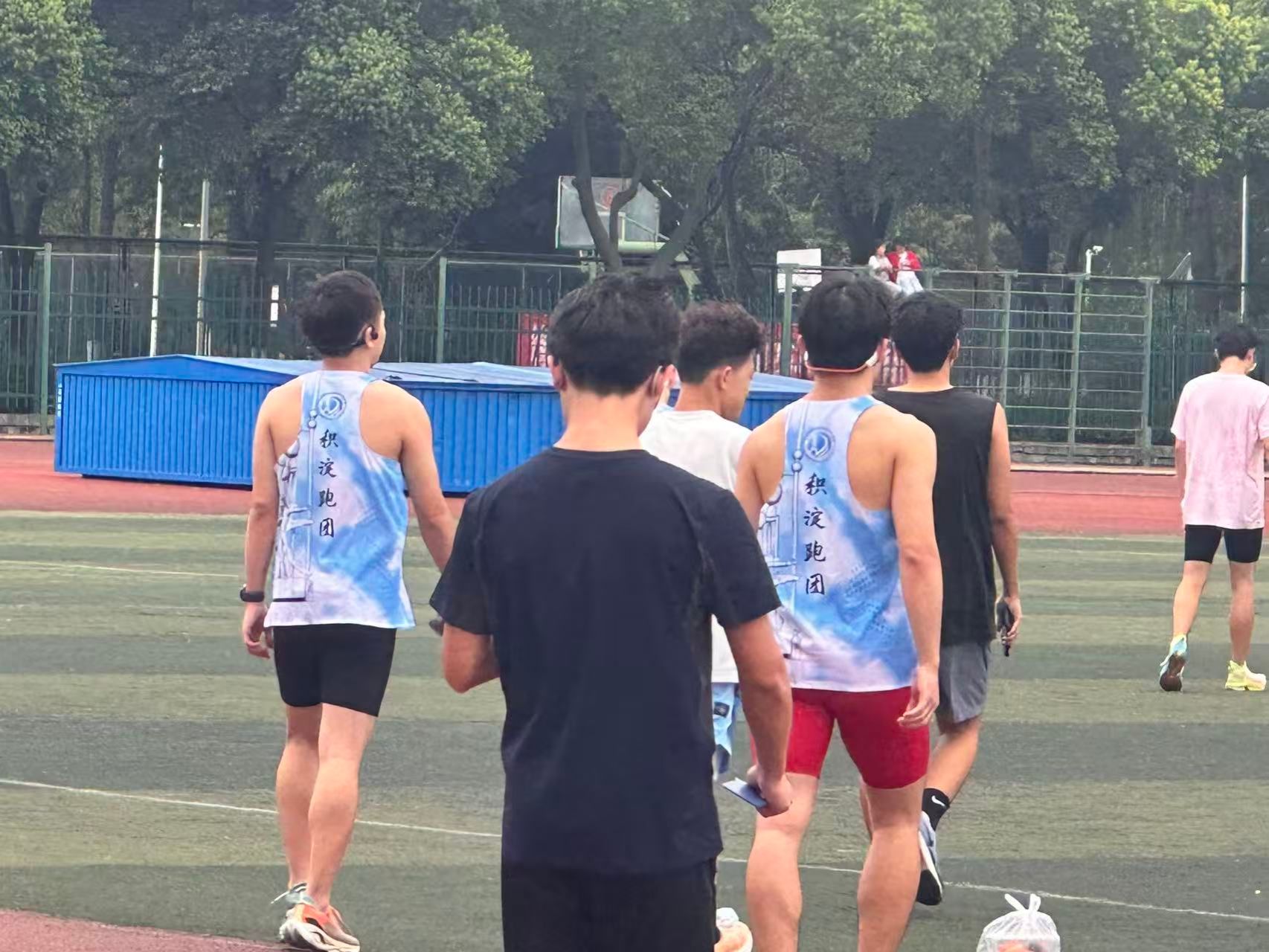 随着团练节奏的自然启动,红色跑道上很快跃动起成员们的身影。队伍中,既有经验丰富的资深跑者,也有刚加入的新面孔。大家身着风格多样却满溢运动感的服饰,不少成员穿着印有 “积淀跑团” 字样的专属背心,在跑道上格外醒目,团队凝聚力悄然流露。