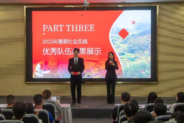 在随后的成果展示环节,七支实践队伍依次登台,通过精心制作的PPT和富有感染力的讲述,将暑期深入基层的实践故事娓娓道来:“义旅阳光”实践队以热忱之心奔赴乡村,在支教与调研中诠释奉献与担当;“耘梦计划”团队深入四川江油中坪村,对话农户与干部,记录乡村振兴的生动实践;“信”光逐梦实践队跨越五省市,追寻科学家精神足迹,通过科普宣讲与微视频传递信仰力量;“攀峰油炬·西南薪火”队立足攀枝花,以专业知识绘就校地协作蓝图,推动项目落地;“茶香筑梦”实践队走进大巴山茶田,探寻茶产业发展之路,以专业所学赋能乡村;“微光成炬”实践队联合公益组织,在金山村开展多元支教与急救普及,用爱心点亮童心;“遂遗华章”团队聚焦遂宁非遗“福锦”,探索“高校+传承人+社区”的文化传承新路径。各队伍的展示内容充实、形式新颖,充分展现了机电学子扎根中国大地、服务基层发展的青春风采与实干精神。