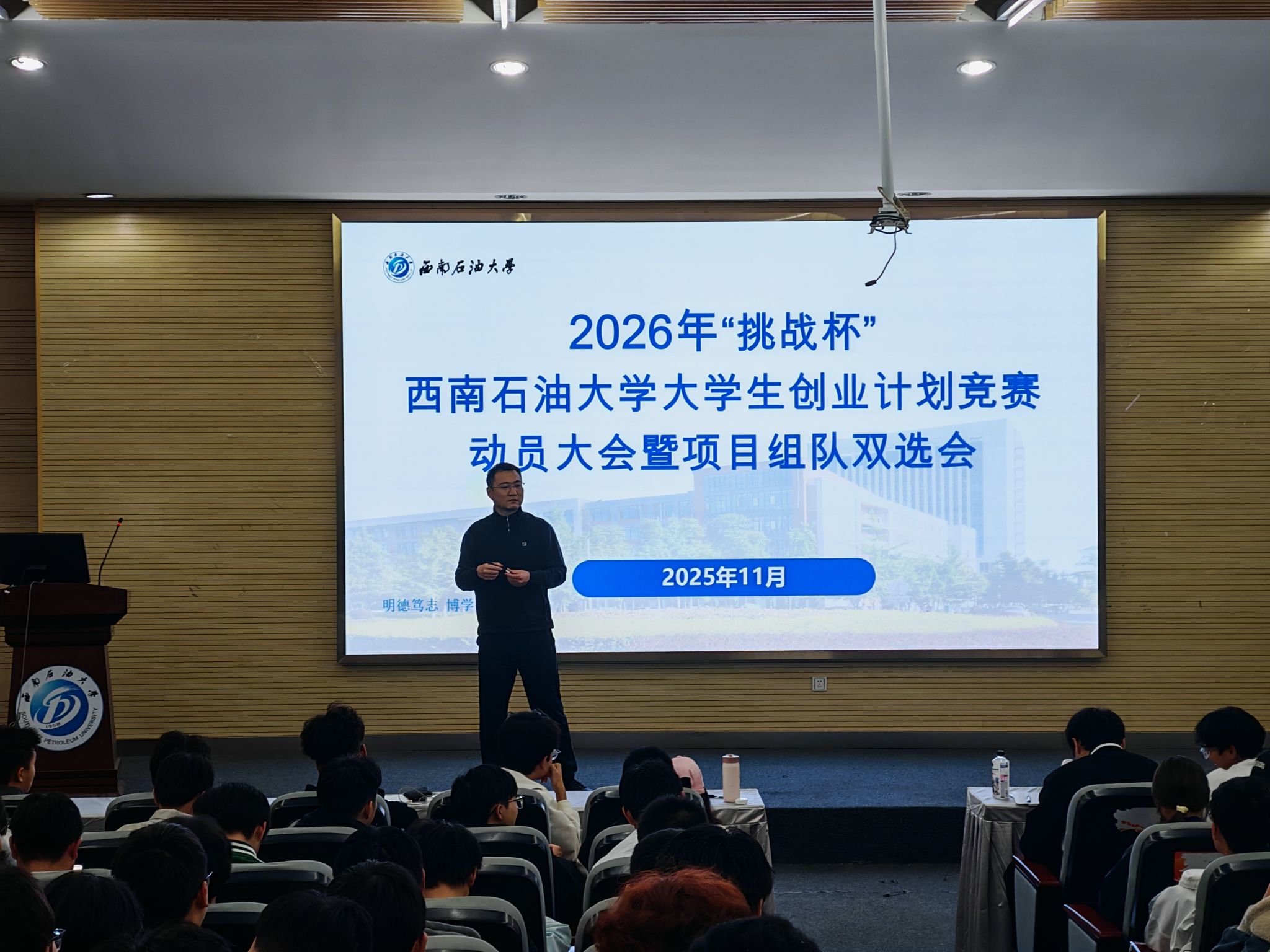 2025年11月7日,西南石油大学机电工程学院2026年“挑战杯”大学生创业计划竞赛动员大会暨项目组队双选会顺利举行,百余名学生代表齐聚会场,正式拉开该校本届“挑战杯”赛事的筹备序幕。