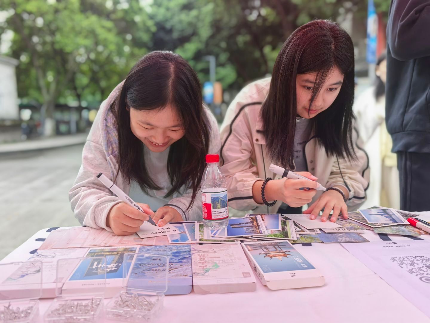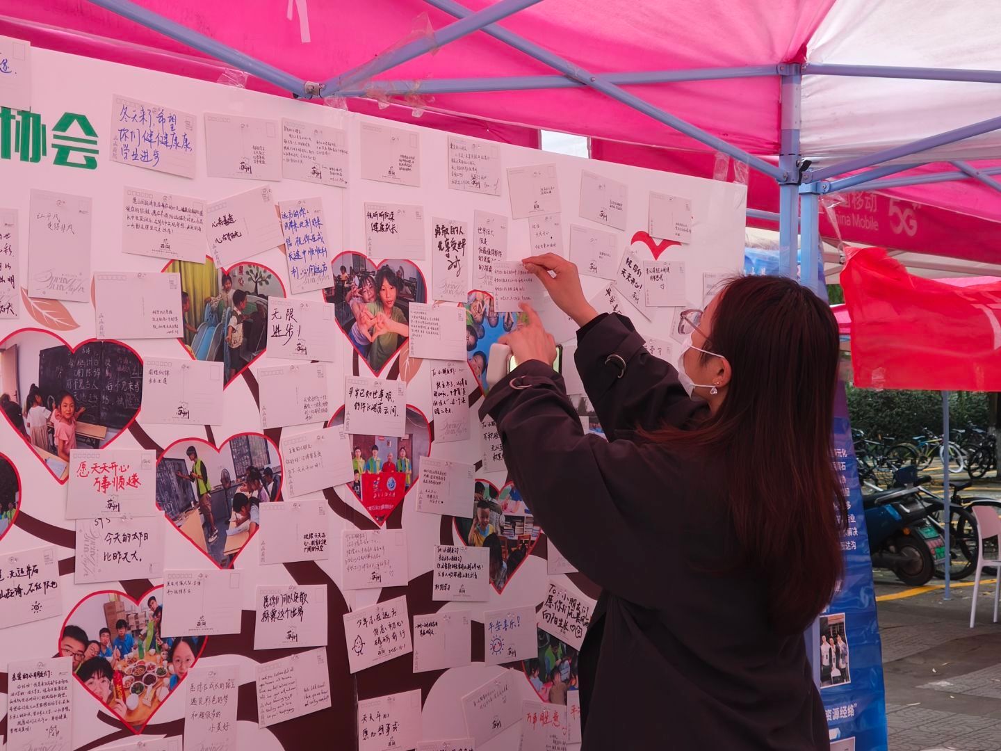 活动期间,一食堂路口的“温暖展板”前人头攒动。不断有同学驻足提笔,在明信片上留下真诚的话语:有人写下鼓励——“你超棒的,别放弃!半山腰太挤,你要去山顶看看”;有人分享成长——“小时候总觉得自己普通,后来才发现,‘独特’才是最酷的礼物”;也有人送上祝愿——“愿你永远有糖吃,有梦做,有风拥抱,有人牵挂”。“虽然只是三行字,但落笔时格外认真,希望孩子们能感受到这份心意。”一位参与同学这样说道。