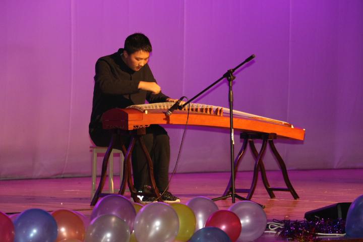 在热闹的相声过后,杨大卫同学为大家带来了本次迎新晚会的特色节目——古筝弹奏《彝族舞曲》,悠扬清越的古筝声仿佛带领着同学们的耳朵和思绪走进了彝族山寨,走进了彩云之南,走进了民俗的殿堂,一曲奏罢,全场掌声雷动!
