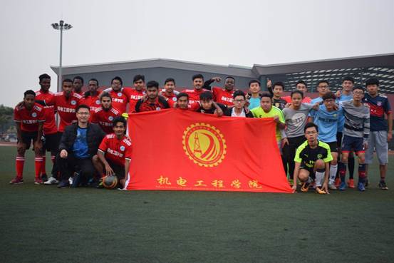 与此同时,为了更好的塑造国际学生班集体,提升班级凝聚力,将体育运动与文化交流向结合,机电院还组织了国际学生足球队,11月25日下午,机电院队同国际学生足球队进行了足球友谊赛。90分钟的比赛中,国际学生上半场以4:0落后,中场休息,国际学生队分析上半场问题所在,统一部署战术,调整各个位置的人员,提高了默契度,下半场扳回4球,最终以4:4平局收场,来自孟加拉国的机电院17级国际班班长Emtiaz表示,球队还需要不断训练磨合,但今天的表现已经很好了,感谢机电院提供这样的平台,让大家在运动中学习文化,大家都学会中国话“好球!”机电院足球队队长,李隆鑫说:“很高兴有这样的机会同国际友人进行比赛,我院的国际学生足球水平还是很高的,他们身体素质过硬,跑动积极,比赛中干净友好,以后会多多组织参与这样的比赛。”