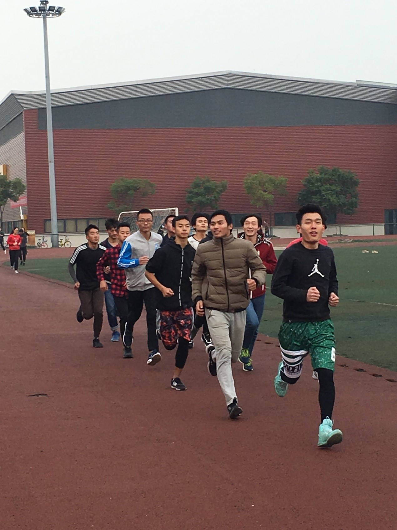 11月26日,星期天下午3:50,机电院田径队在二期运动场进行了第一次的冬季训练。
