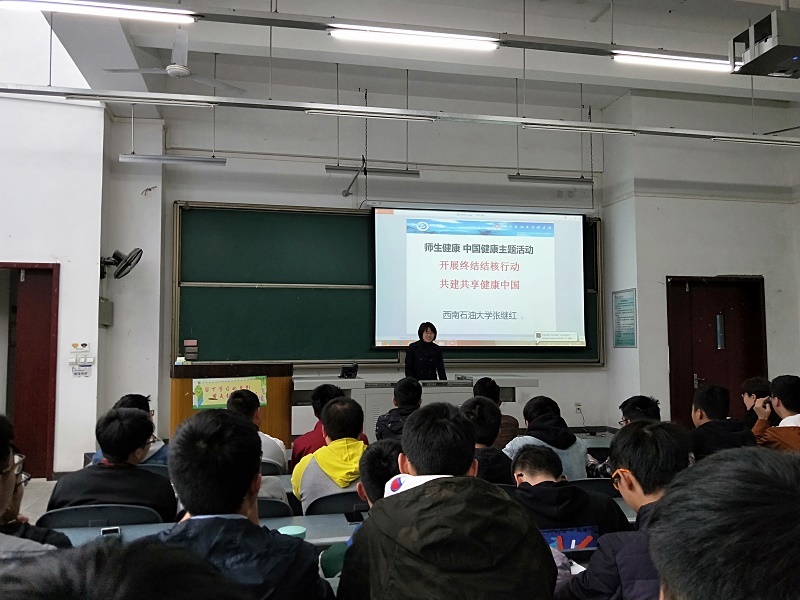 3月21日下午4点,宣讲活动于明德楼教室A213举行,西南石油大学校医院院长张继红、新都区疾病预防控制中心李会相继为同学们介绍了结核病的症状初期治疗、基本防控等知识。让同学们认识到预防结核病的重要性以及结核病不是不可治愈的,国家也有相应的医疗政策,做到国民上下一同抵御结核病。
