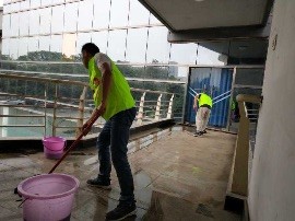 图一:志愿者们在清扫楼梯