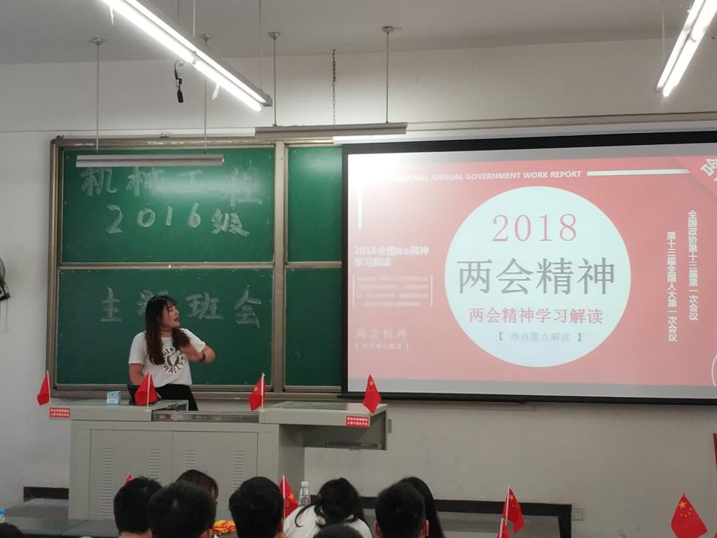 为了让同学们了解两会,关注国家政策,增强大家作为新时代大学生的历史责任感。2018年4月12日机电院机械工程专业就学习“两会精神”在明志楼a301教室展开了学习班会。