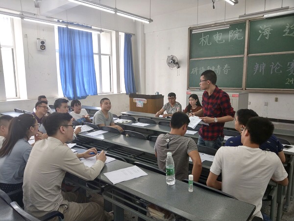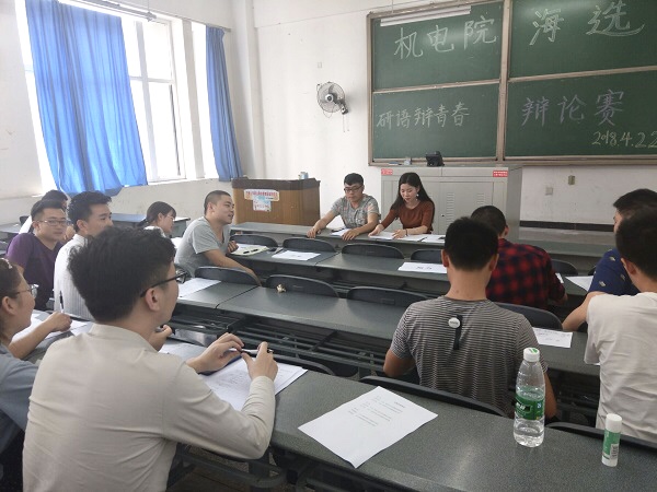 4月22日下午两点半,在我校明志楼A301,举办了机电院首届研究生辩论赛“研语辩青春”。本次辩论赛请到机电院研会主席团主席和各部门部长担当本次辩论赛评委,各年级研究生同学们积极参与,热情高涨。